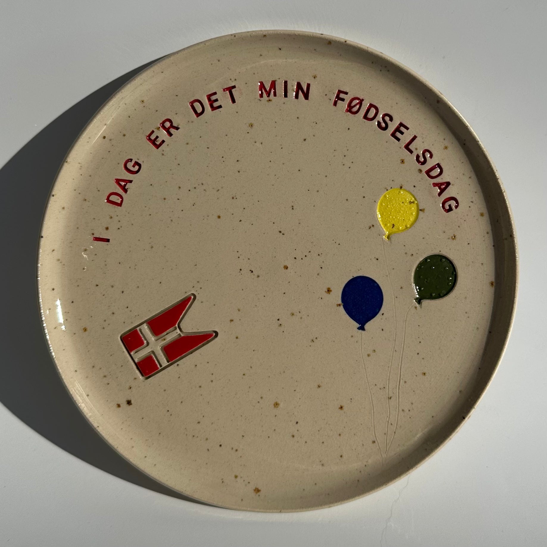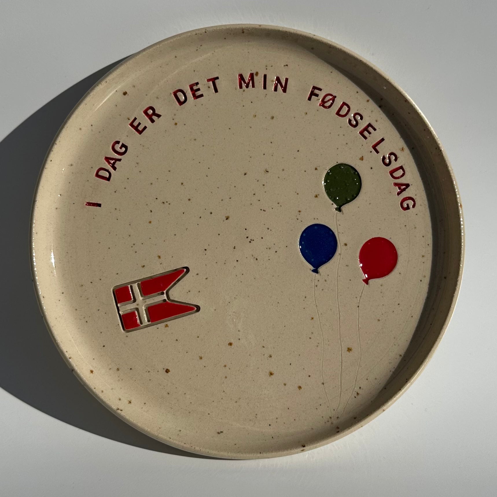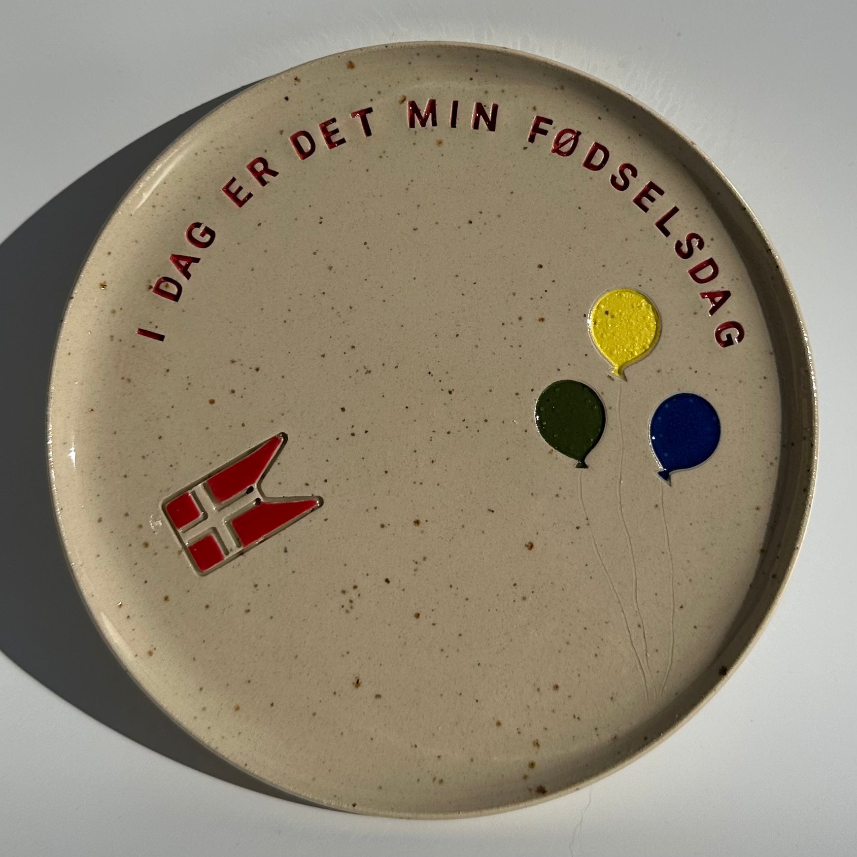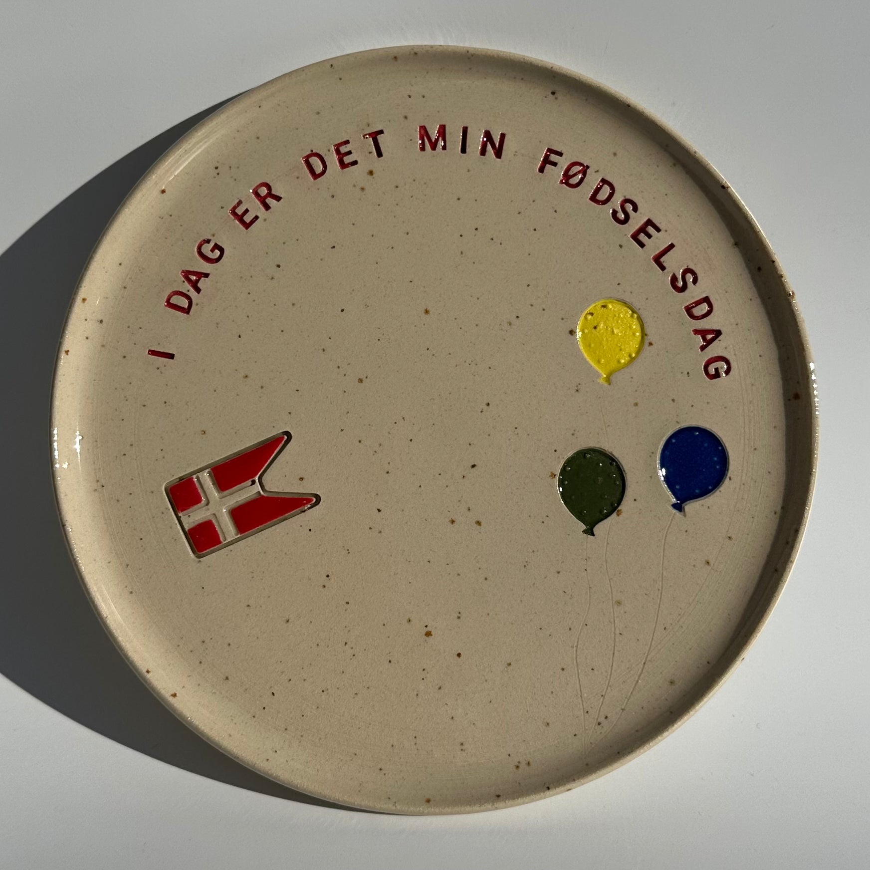 Fint sæt som kan tages frem år efter år. Sættet består af kop med flag langs siden og lille kagetallerken med tekst og motiv.
