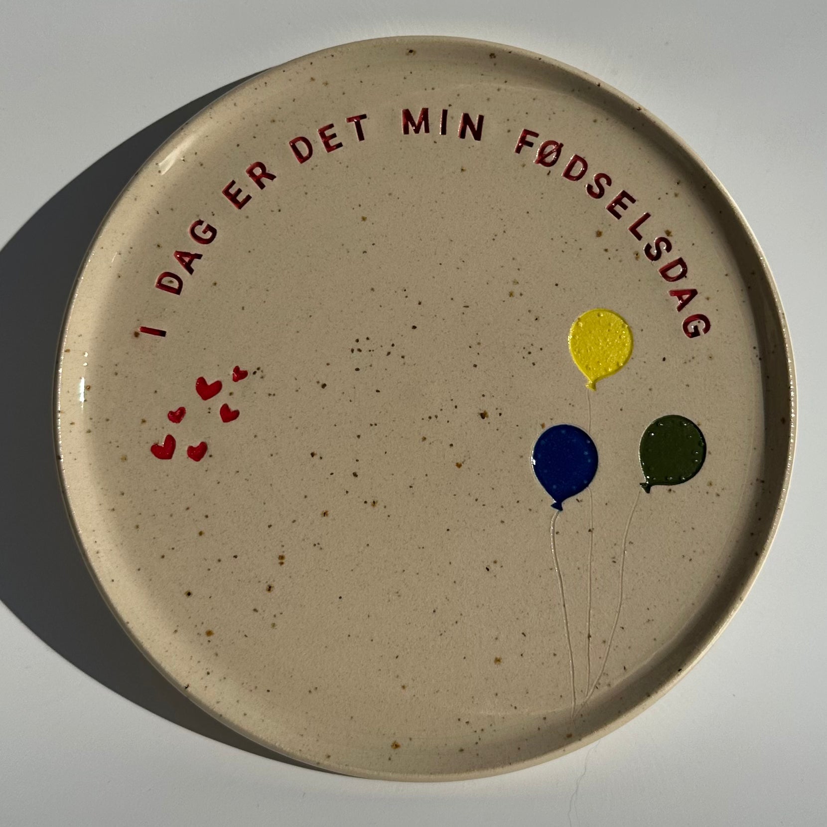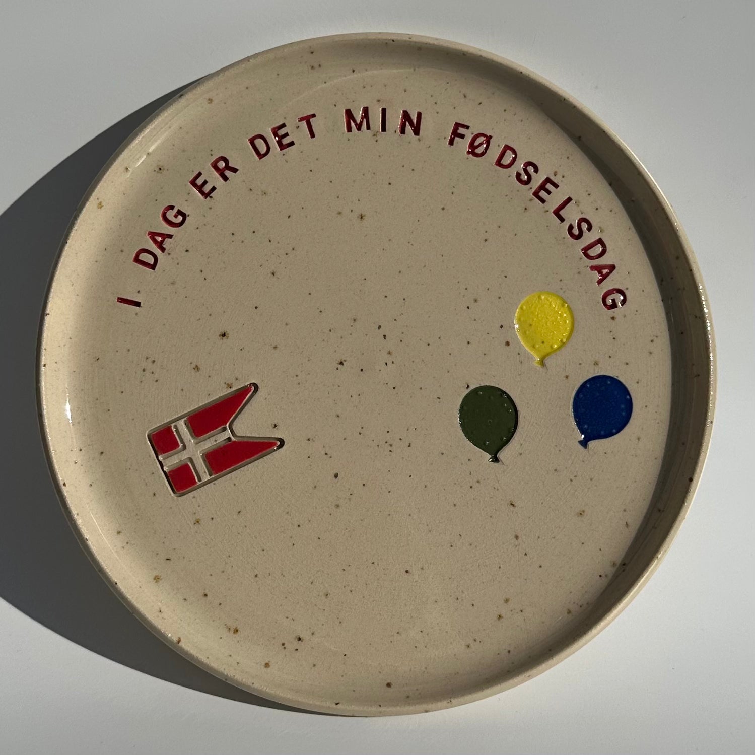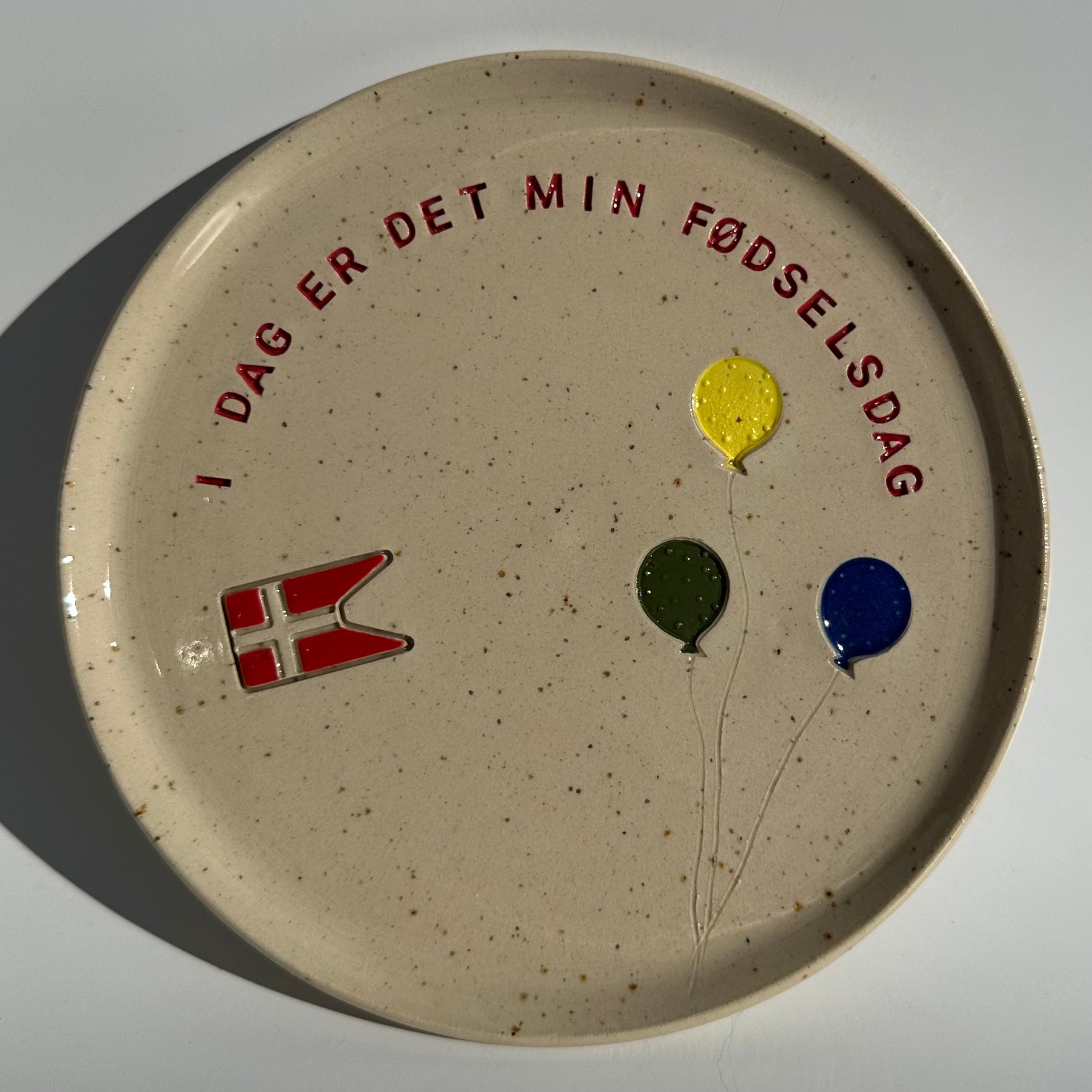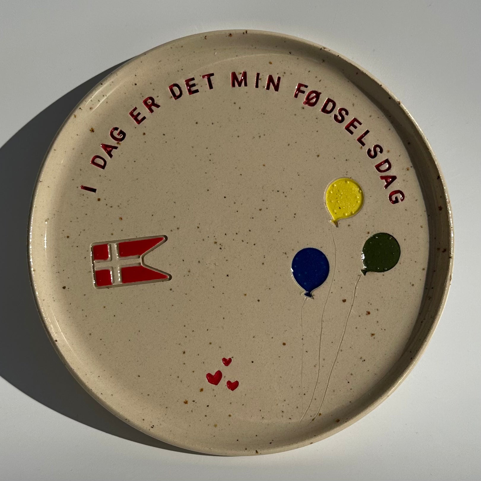 Fint sæt som kan tages frem år efter år. Sættet består af kop med flag langs siden og lille kagetallerken med tekst og motiv.