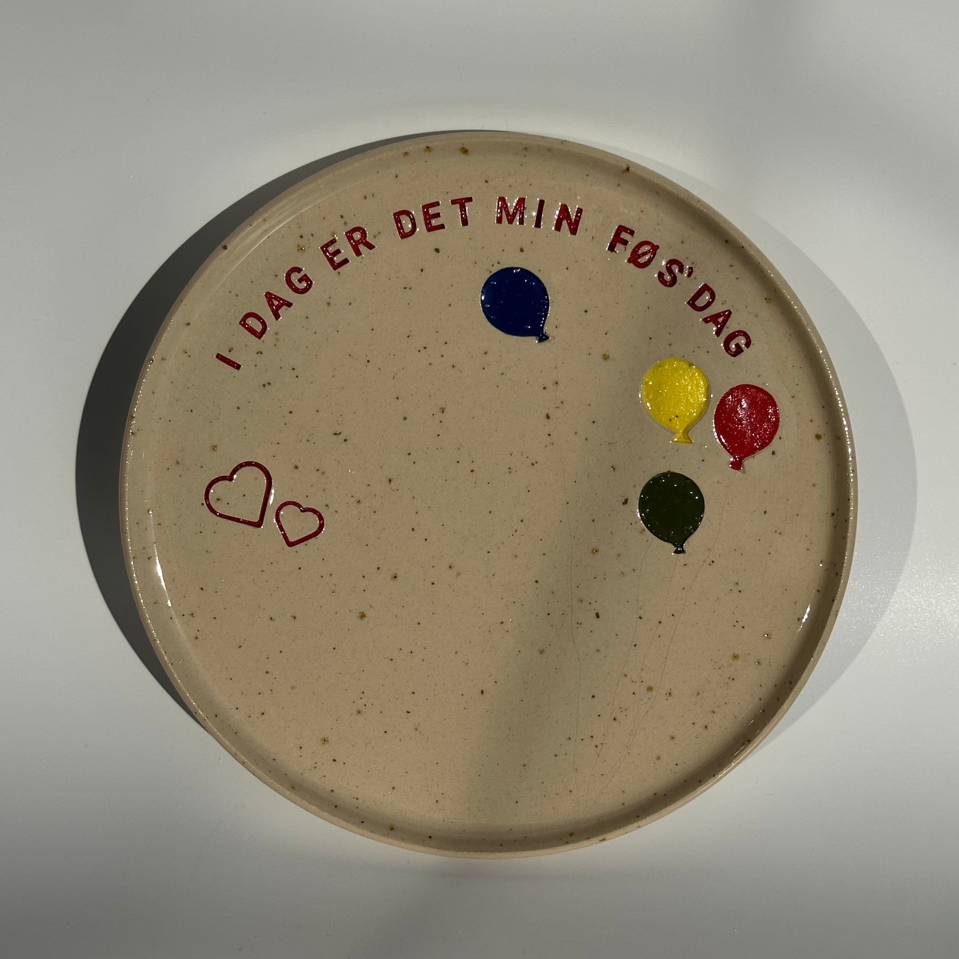 Fødselsdagssæt med en tanke til mit fynske ophav. Sættet består af lille kagetallerken med motiver og tekst samt kop med flag på siden og tekst i bunden.