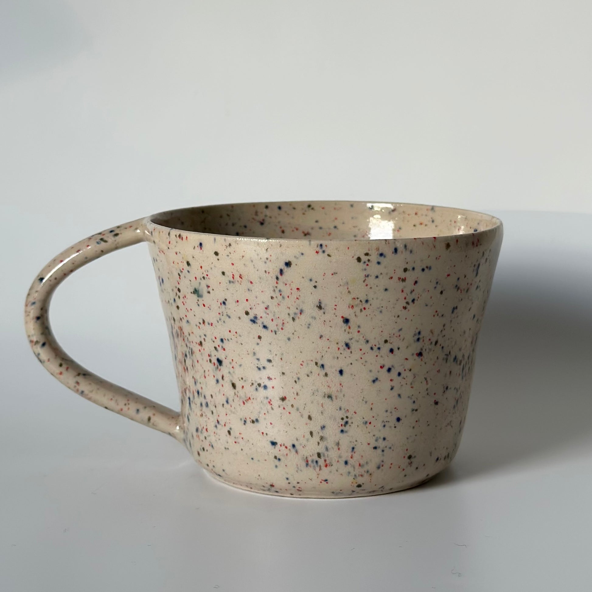Fin lysprikket kop med fine små fyrværkerimønstre i glasuren.