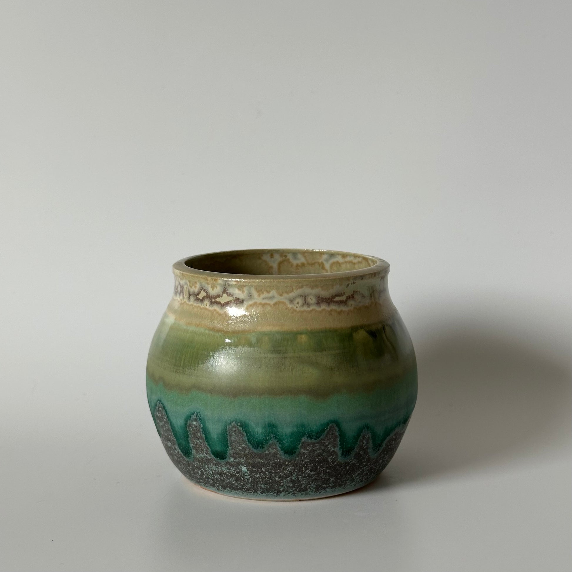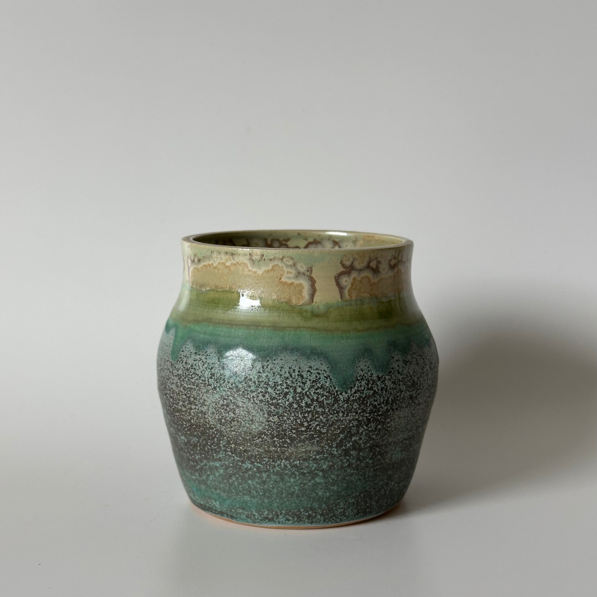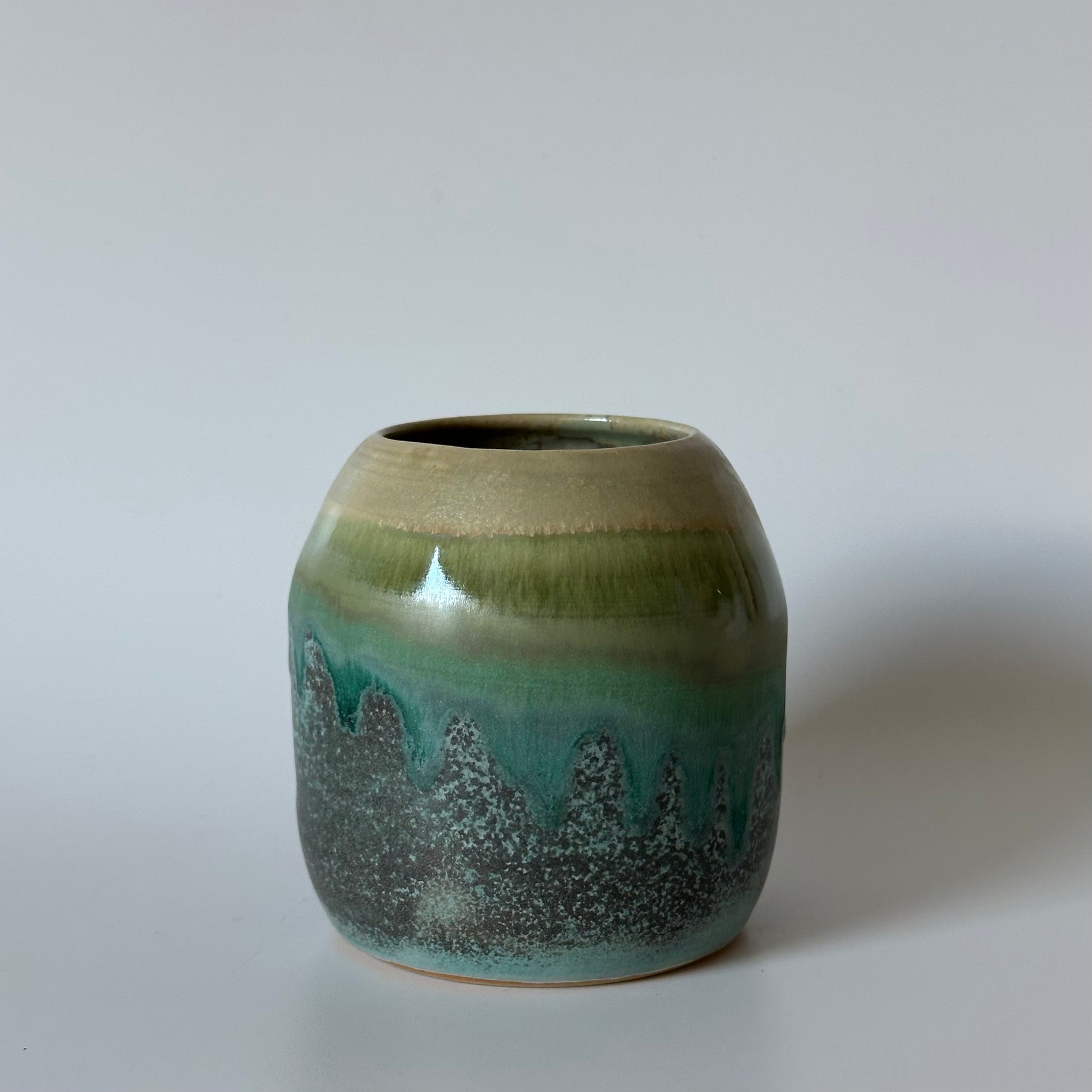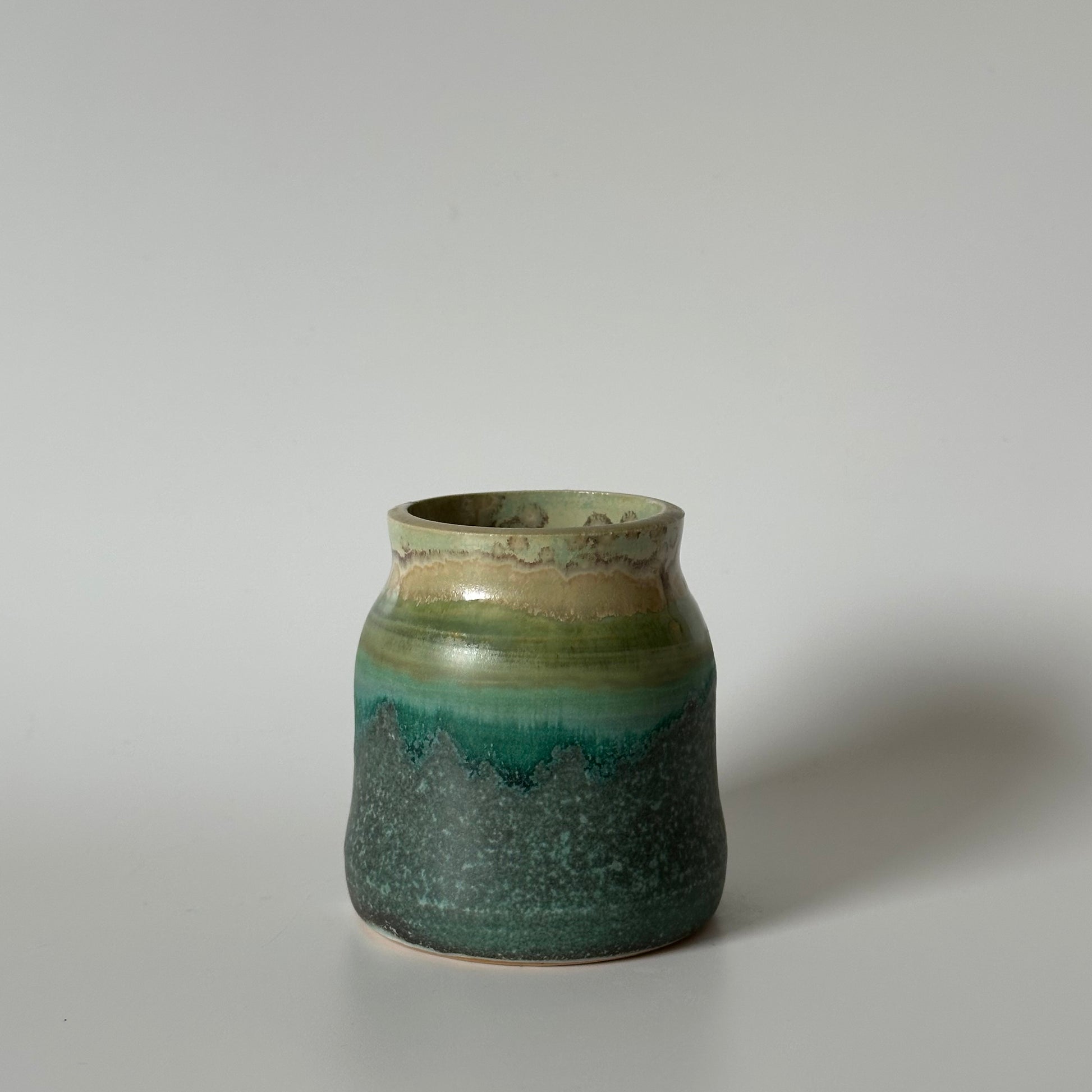 Sød lille minivase til en lille blomst fra haven eller som pynt i hjemmet. Smuk grøn farve med masser af spil både indeni og udenpå.